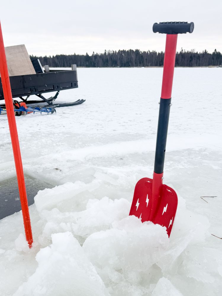 Hålspade till vinterfiske, bile, friluftsliv ock snölekar för barn