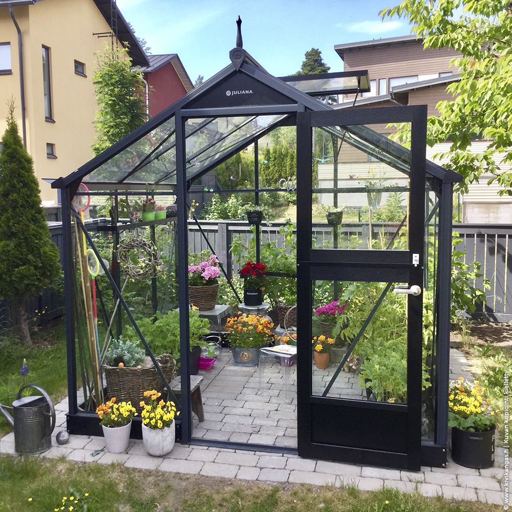 Växthus Juliana Compact 5,0 m² säkerhetsglas, antrasit/svart stomme