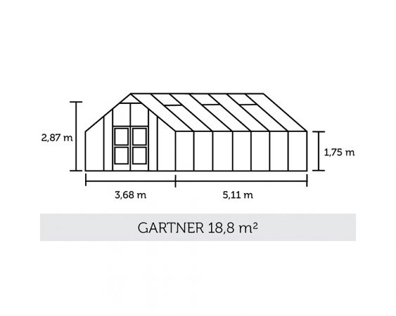 Av Julianas traditionella växthus med sadeltak, är Gardener den bredaste. Modellen är rymlig, och passar både till odling och som ett uterum där man kan vistas och umgås i. Tack vare sin bredd (368 cm), öppnar Gardener dörren till helt nya möjligheter. Visst går det att få en hel del att rymmas i ett litet växthus också, men ett stort växthus uppfyller nog många drömmar för en odlingsentusiast. Det börjar med odling av ett par olika sorter gurka och tomat, och antagligen kommer du att bli sugen på att prova odla fler olika sorter, t.ex. tomater i olika färger, former och smaker. Lite mer exotiska växter som trivs i värme låter kanske också intressant – chili, äggplanta, kapkrusbär, majs och vattenmelon. Då önskar man att det fanns tillräckligt med utrymme i växthuset! För att få utnyttjat bredden på Gardener modellerna för effektiv odling, kan du bygga en odlingsbänk längs med mitten av växthuset, och längs med väggarna. Om du istället tycker om att ställa till med fester utomhus, så finns det gott om plats för ett större bord i växthuset. Det är ett varmt och skönt utrymme på våren och hösten, då det ännu är svalt utomhus, och du slipper även myggorna.