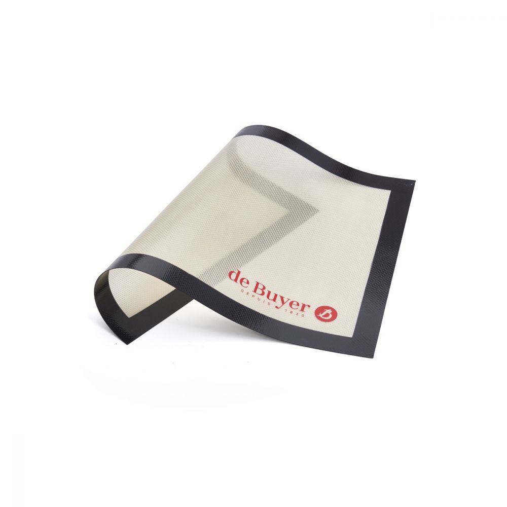 Paksu silikonipinnoitettu lasikuitualusta, joka korvaa kertakäyttöisen leivinpaperin ja soveltuu sekä kuumaan että kylmään työskentelyyn.