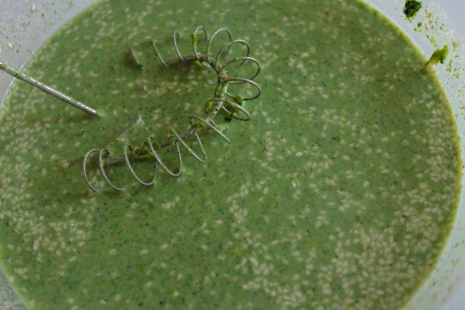 Sekoita kaikki ainekset, lukuun ottamatta nokkosia, keskenään. Lisää lopuksi nokkosmössö.