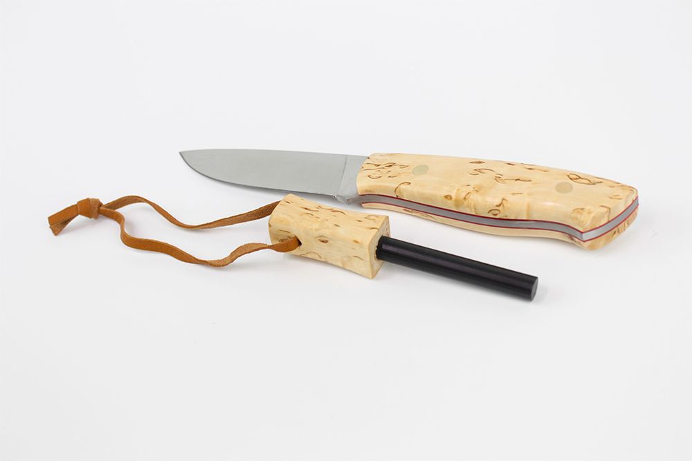 Puukko Brisa Trapper 95 Firesteel, Curly Birch