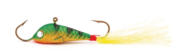 Aitoa pikkukalaa muistuttava karvapyrstöinen tasapaino säihkyvillä timanttisilmillä. Pyrstön karvoissa fluoresoiva pimeässä loistava väri. Pilkin leveä lutikkamainen muoto pistää sen liukumaan pitkälle sivulle ja heilumaan viekottelevasti kesken uinnin. Ahvenen ja kirjolohipilkkijän varma valinta.